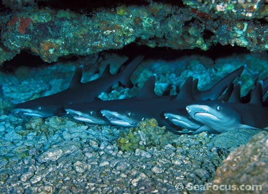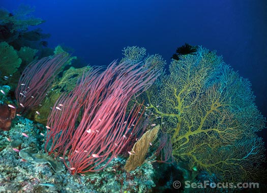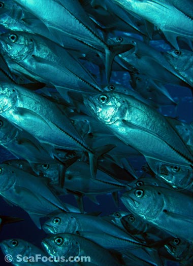Tales of pelagics are rife. At certain times of the year hammerheads are said to appear in massive numbers while at other times there are impressive quantities of other pelagic species. Constant currents across the reef attract big animals – small white tips, large grey sharks, dog tooth tuna and giant trevally along with clusters of striped barracuda and schools of jacks. There are turtles on the reef tops and families of juvenile sharks under bommies.