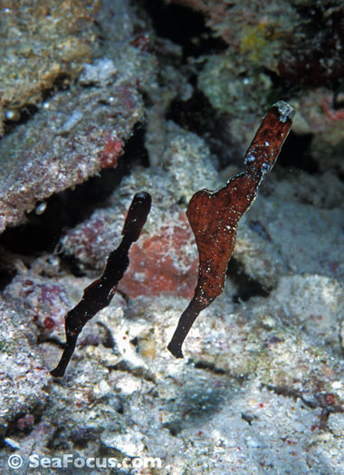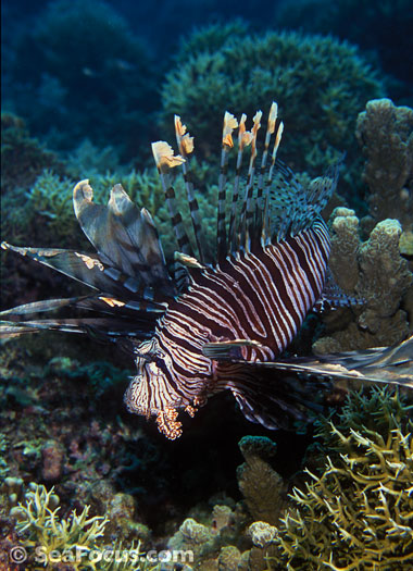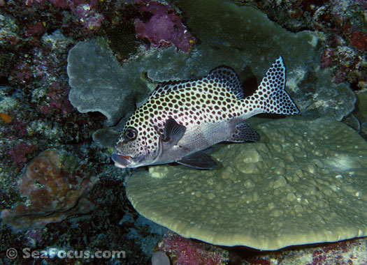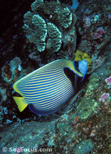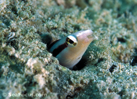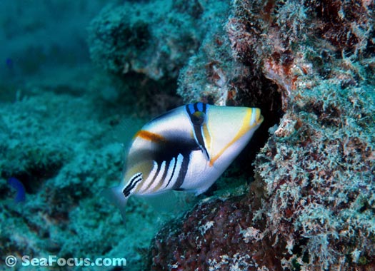 There are small critters too, like juvenile razor fish, arc-eyed hawkfish and ghost pipefish hiding in the corals. Inside the lagoon, the sandy bottom is the place to hunt out mantis shrimp, tiny gobies and the Picasso trigger fish.