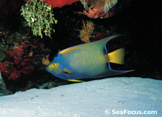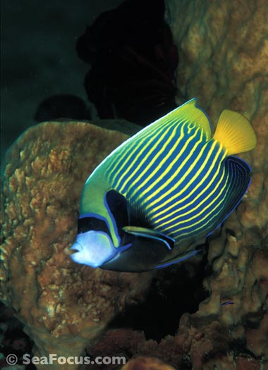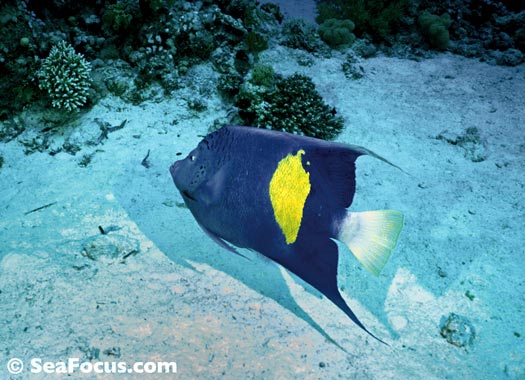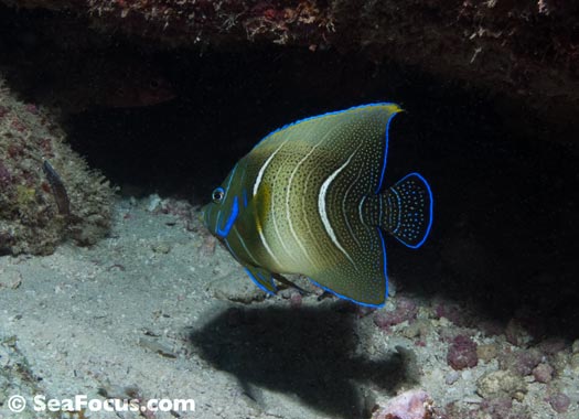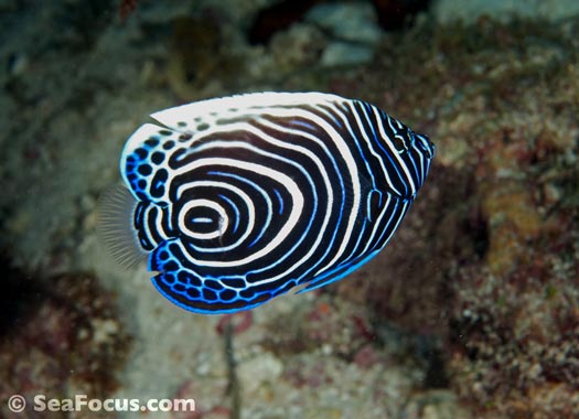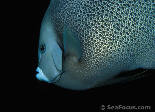 The angelfish most divers see tend to be larger marine species from the Holocanthus and Pomocanthus groups rather than dwarf angels from the Centropyge group. The most important or defining feature of marine angelfish is the distinct spine or thorn that forms part of their gill covers. This characteristic is how they earned their Greek name, Pomacanthidae meaning cover and akantha meaning thorn.