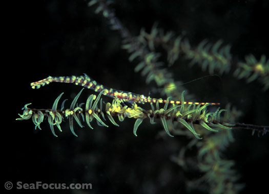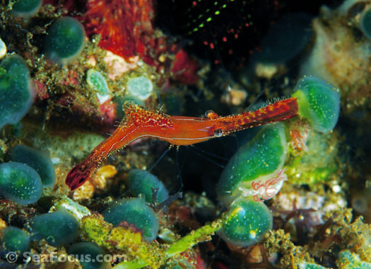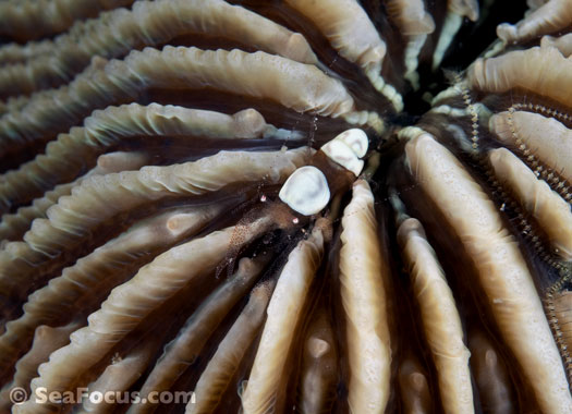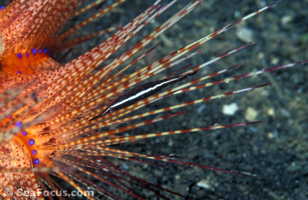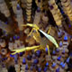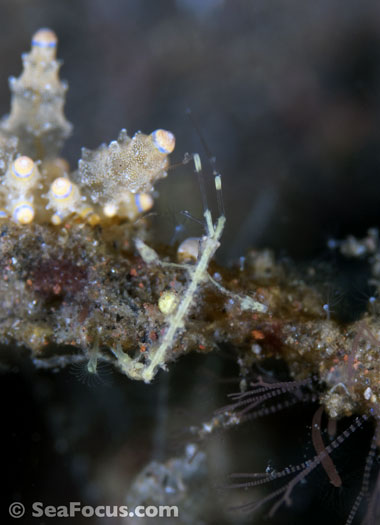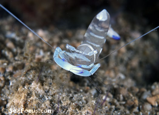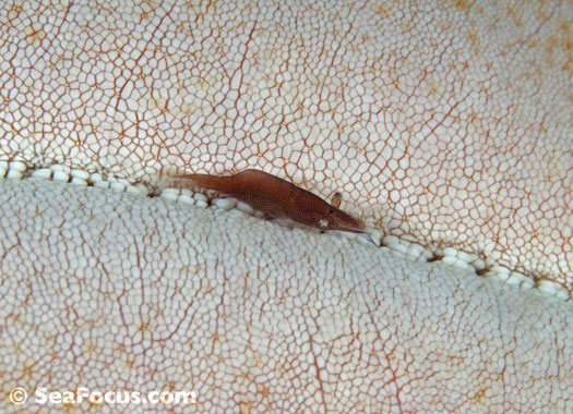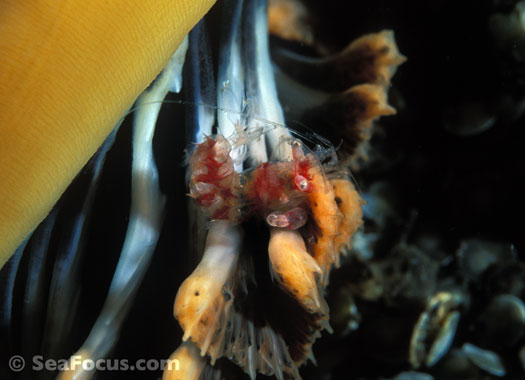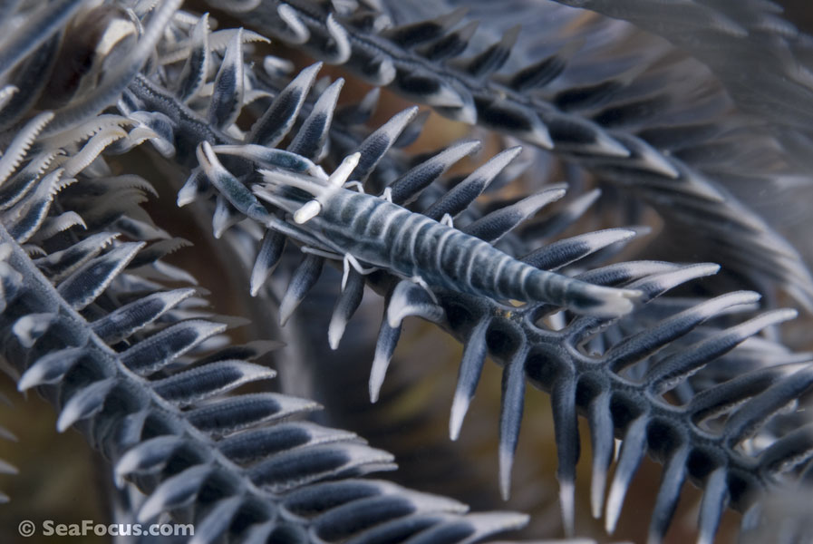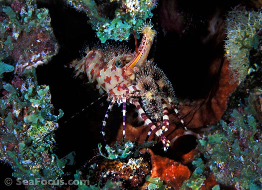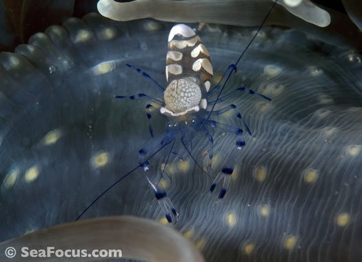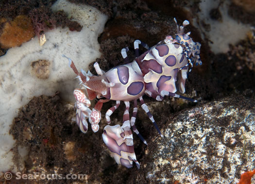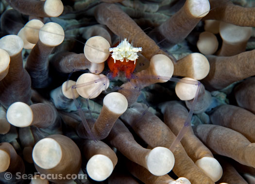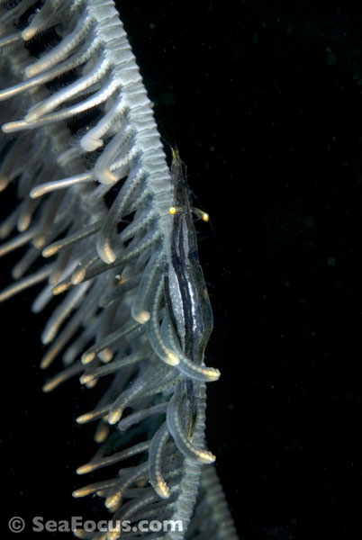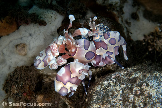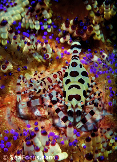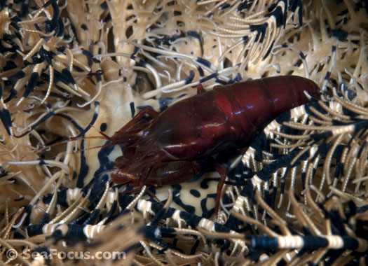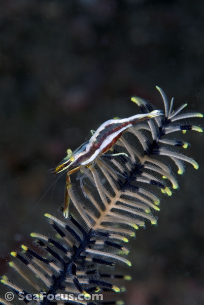 For divers, shrimp are seen most. They come in an infinite variety of colours and patterns, which allows them to blend into reef hidey-holes. Whip corals, sea urchins, sea stars and anemones are excellent places to look for them.