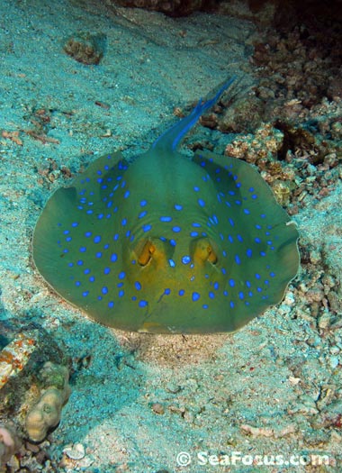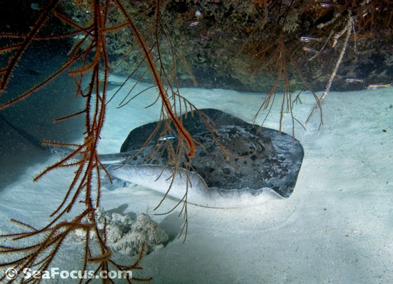 Stingrays have a barbed stinger, and despite the negative publicity at times, these rays tend to be placid creatures that avoid contact with others. They hide under wrecks, inside caverns or on the reef and only ever sting in self-defense. Depending on the species, the stinger can be up to 35 centimetres long and has grooves that contain venom glands. Some stingrays have more than one stinger.