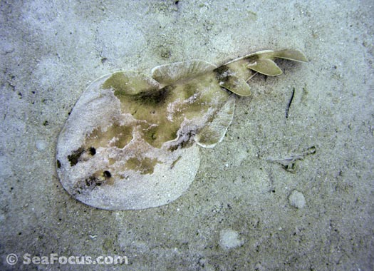 Electric rays are a different shape to stingrays with a stubby tail and extended, flat pectoral fins containing a pair of kidney-shaped organs. These generate an electric current, which varies from 8 volts up to 220 volts. This is used as a defense mechanism and also to immobilize prey. Sometimes strong enough to stun humans, the ancient Greeks and Romans used these fish to treat a variety of ailments.