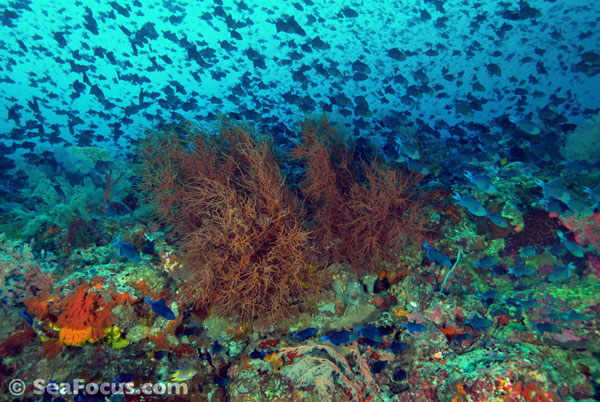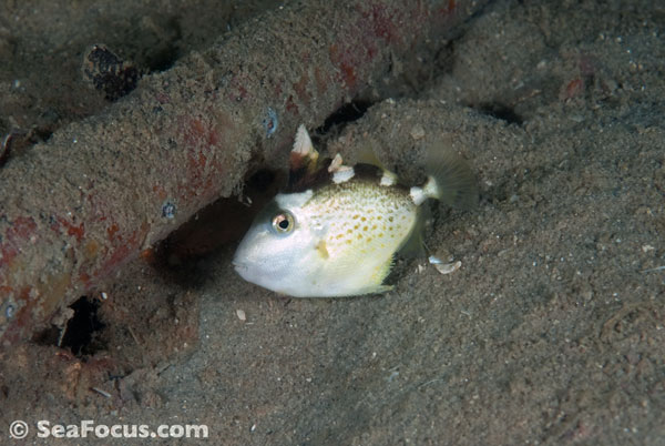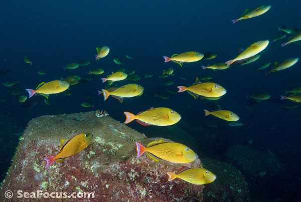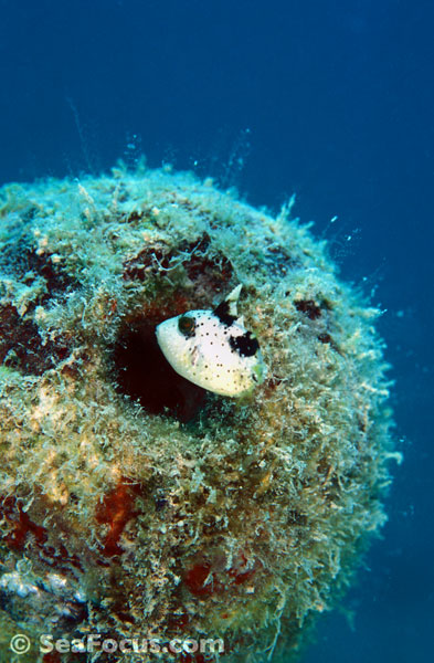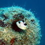 While a couple of triggerfish grow to about a metre long, most are between 10 and 30 centimetres. They are colourful fish and highly decorated, yet despite their visual appeal they tend to be much disliked by divers and usually for good cause – these are grumpy, bad-tempered fish! Their reputation comes partly from their shape with a large head, tiny eyes and a small mouth packed with strong teeth that have been adapted for crushing shells. However, what really built their reputation is the way a few become incredibly aggressive when guarding their eggs. Both the picasso (Rhinecanthus aculeatus) and titan triggerfish (Balistoides viridescens) viciously defend their nests against intruders, including divers. Their territory extends around the nest as well as above it on a cone shape that rises and expands in the water column. If you see a nest site, the best tactics is to remain at the same depth as the fish, then back off. Titan triggerfish can be one of the biggest threats to divers due to those powerful teeth and aggressive nature.