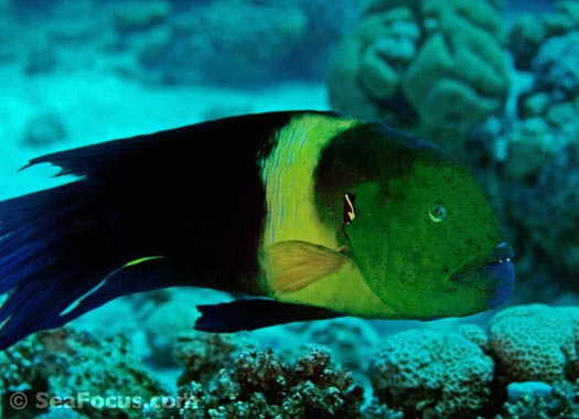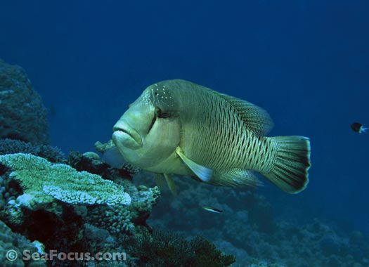 The Napoleon wrasse to the left is a Terminal Phase adult – a male of some age – while the image above is one in it's Initial Phase, meaning a young adult that is only just sexually mature and could be either male or female.